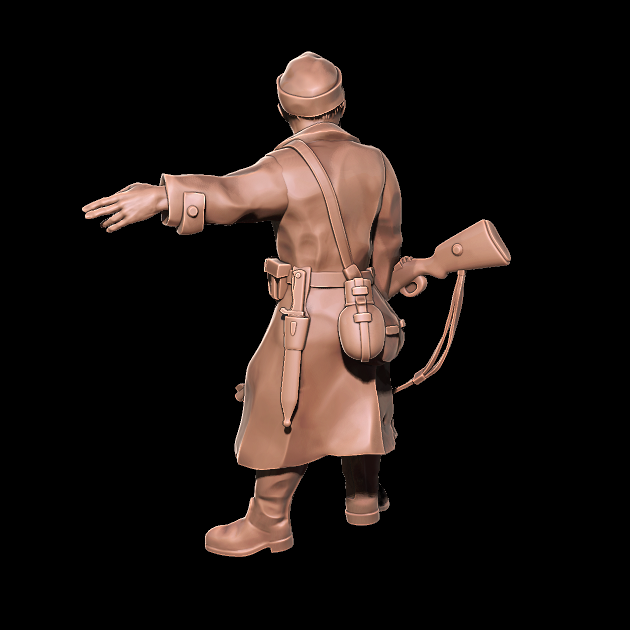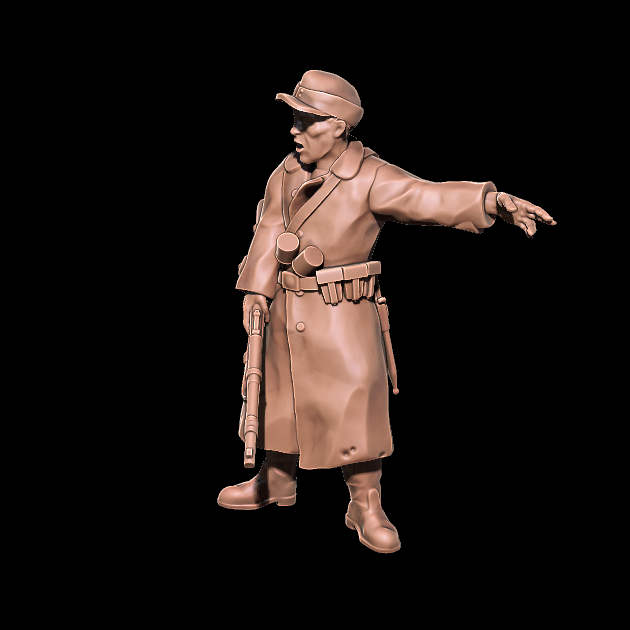 3d printable miniature of elderly leader of German late war militia.