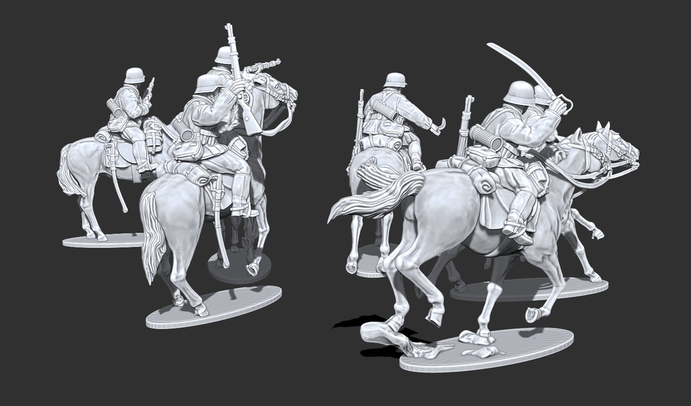6 mounted Early War German cavalrymen form Kickstarter basic goal.